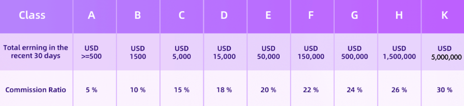 Your daily sub-agent commission is calculated as (your commission rate − sub-agent’s commission rate) × that sub-agent’s daily revenue, done separately for each sub-agent, with commission rates adjusting based on total earnings in the past 30 days.